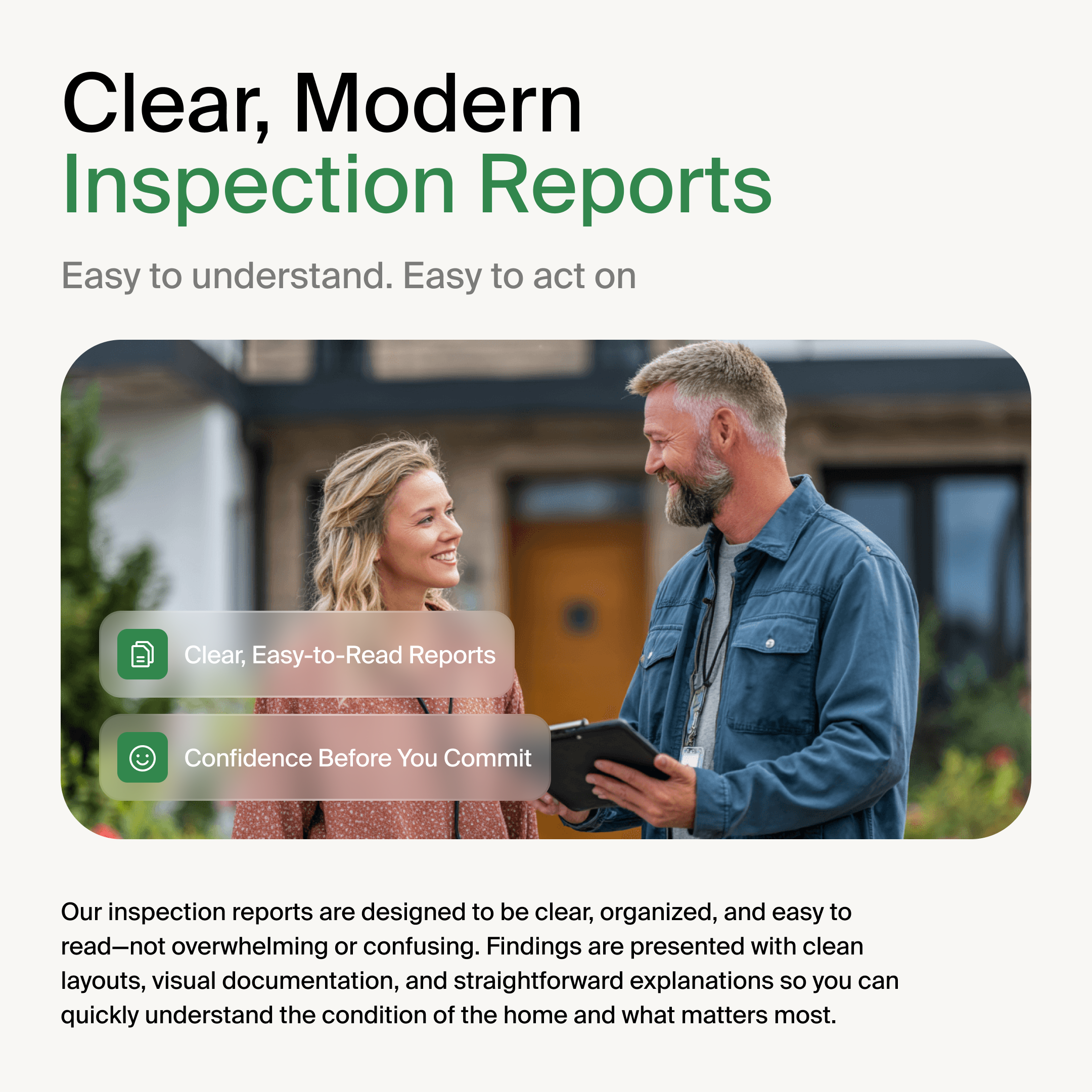 We are clear, honest, and keep our findings in perspective to your clients.
