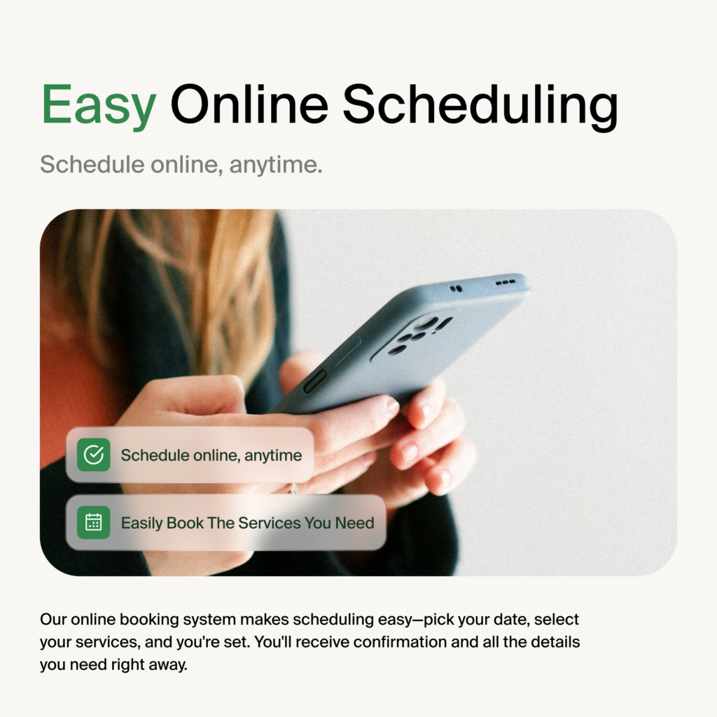 We make ourselves available to schedule online, by phone, or email.