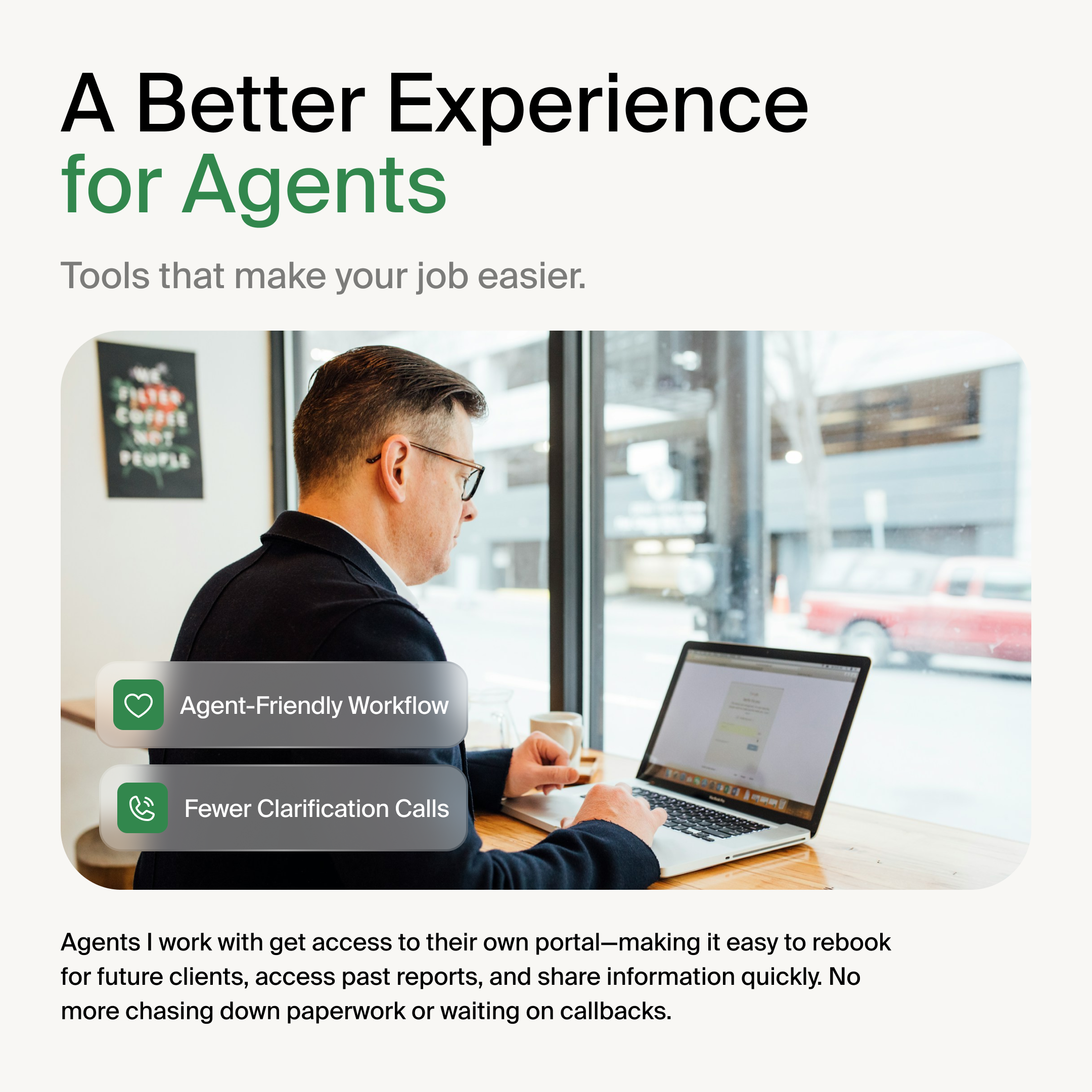 Agents get their own dedicated portal—making it easy to rebook inspections, access past reports, and quickly share information. No more chasing paperwork or waiting on callbacks.